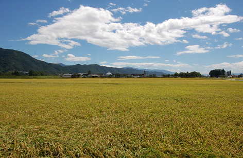 重柳のちかく。周りは全て小麦色の稲畑。でも気になるのは虫の少なさ。